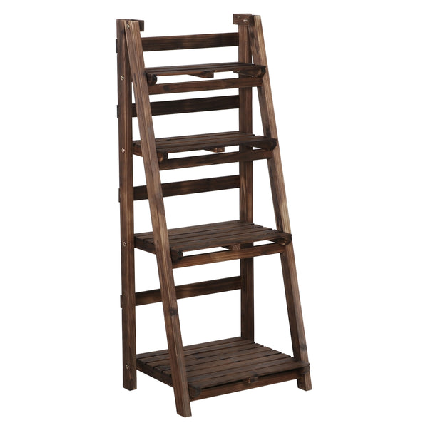 Spacious: Ladder-type A-frame 4-tier open storage stand rack shelf holds at least 8 plant pots.