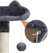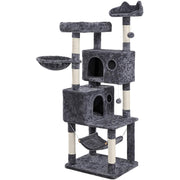 - MULTILEVEL CAT HOUSE: This cat tree has two platforms, a plush basket, two condos with windows, a hammock, six scratching posts, and two elastic furry balls. With different tiers and structures, a multiple-level cat tree offers enough space for cats to play and sleep. It is suitable for around three kittens or two normally-sized cats, not suitable for large-sized cats.