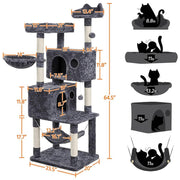 64.5-inch High, Multi-level Cat Tree, High-Quality Materials, More Stability, Scratching Posts For Cats, Easy Installation, Design For More Cats.