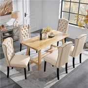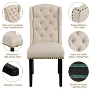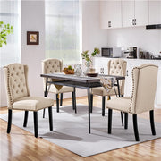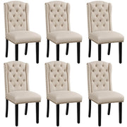 Set of 6 Fabric Upholstered Dining Chairs, Classic Button Tufted Kitchen Chairs with Wing Design Backrest, Nailhead Trims, and Solid Wood Legs, Beige