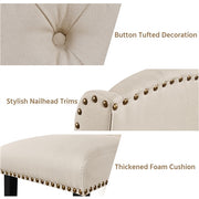 • Button-tufted Backrest: These accent chairs are upholstered in breathable terry fabric, with stitched button tufting on the backrest and bronze-finished nailhead trims along the sides