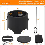 16″ Smokeless Fire Pit, Portable Outdoor Firepit Set W/ Silicone Fire Pit Mat & Fire Poker & Rain Cover & Lid & Log Grate, Black