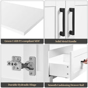Pragmatism: The single bathroom vanity cabinethas two symmetrical doors with metal pull hands, a hidden sliding rail, anddurable hinges, then it will be convenient to open/close or pull out forstoring and taking items.