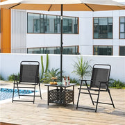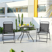 Set of 4 Outdoor/ Patio/ Garden/ Backyard Texteline Foldable Dining Chairs, All-weather Folding Lawn Chairs with Backrest/ Armrests Black