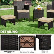 Effortless Cleaning: Composed of PE rattan, iron frames, and washable cushion covers, this wicker ottoman chair set is easy to clean. Just wash it with water between seasons, and it can be kept as good as new for years.