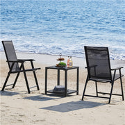 Slatted Design: The slatted tabletop and shelf give the table a light, airy feel while allowing for quick drainage. This thoughtful design prevents water from accumulating on the metal surface, keeping both the table and your items dry, even during light rain.