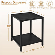 Double-layer Outdoor End Table, Slatted Garden Side Table with Storage Bottom Shelf, Black