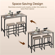 - Space Saving & Versatile: This kitchen table set, with its rectangular shape, can be perfectly placed against the wall or behind your sofa to save space. It can be used as a cozy bar table, a basic breakfast table, or a work or study desk. Moreover, these backless stools can be easily hidden beneath for a clean and efficient home.