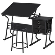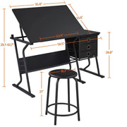 Drawing Table, Adjustable Drafting Table, Steel and MDF Construction, Tilting Top Table, Drawing Table for Artists, Indoor Drafting table with stool