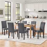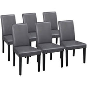 Set of 6 Faux Leather Dining Room Chairs, Armless High Back Padded Kitchen Chairs with Rubberwood Legs, Dark Gray