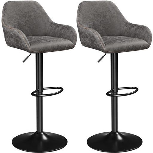 Set of 2 Vintage Bar Stools Height Adjustable Swivel Bar Stools Iron Base PU Leather Upholstered Bar Chairs with Backrest, Armrests and Footrest A...
