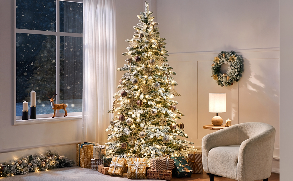 View full detailsFlocked Artificial Christmas Tree with Foldable Stand Hinged Flocked Fir Lifelike Holiday Decorative Tree with PVC Tips About this item 【Snow Dust...
