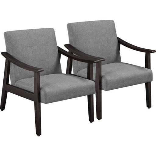 Set of 2 Stylish Modern Fabric Accent Armchairs with Rubberwood Legs, Linen and Wooden Chairs for Living Room, Guestroom, Office, Dark Gray About t...