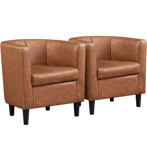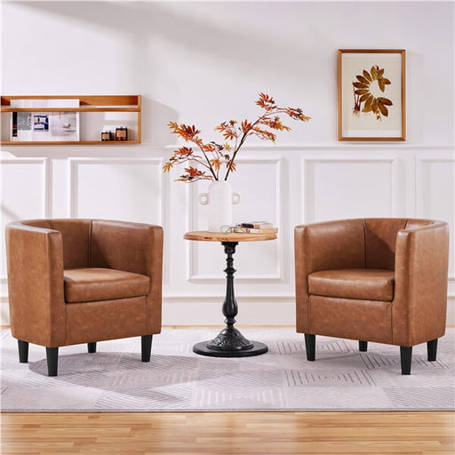 Set of 2 Barrel-shaped Chairs Accent Arm Chairs Faux Leather Upholstered Club Chairs Contemporary Style For Living Room Bedroom Reception Room, Bro...