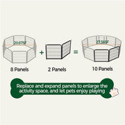 • 2-Panel Pet Play Zone: Each dog playpen consists of 2 panels that securely connect with long metal stakes. The amazing part? Add more sets to seamlessly expand the enclosure, customizing a spacious play and rest zone that grows with your pet's needs