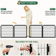 • Easy Setup with No Hassle: This two-panel indoor metal pet fence is designed for easy assembly and reconfiguration. The user-friendly installation ensures that you can quickly set up or relocate it according to your pet’s needs