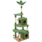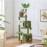 59in Cat Tree, Palm Leaf Cat Tower for Indoor Cats with Green Leaves, Cat Climbing Frame with Fluffy Balls Natural Sisal Scratching Posts Platform Condo for Kitty