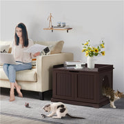 Cat Litter Box Enclosure, Hidden Cat Litter Box Furniture with Partition, Pet Washroom Side Table with Removable Divider & Raised Edge, Indoor Wooden Cat House, Espresso
