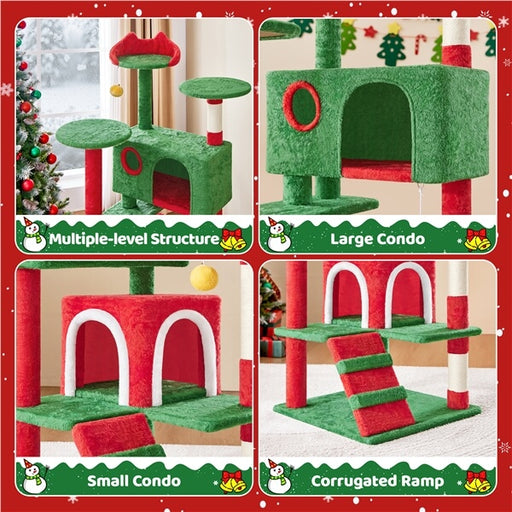 View full detailsYaheetech 23.2″ H Spacious Cat Tree with Wide Top Perch for Indoor Cats, Red/Green About this item Cozy Private Hideaway: A soft, enclosed condo o...