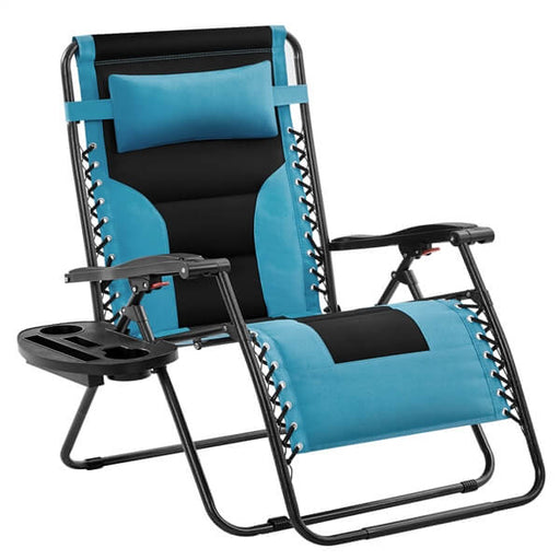 View full details29in Padded Outdoor Zero Gravity Chair XL Oxford Cloth Patio Lounge Camping Chair Foldable Reclining Lounge Chair with Armrests/ Pillow, Black/Aqua...