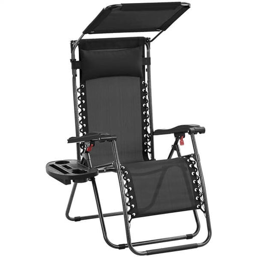 View full details26in Outdoor Zero Gravity Chair Patio Lounge Camping Chair with Sunshade Foldable Reclining Lounge Chair with Cupholder/Pillow, Black About this it...