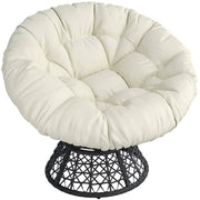 360° Rotatable Outdoor/Indoor PE Rattan Chair with Thick Tufted Cushions, Outdoor Swivel Round Chair for Garden, Patio, Gazebo, Porch, Living Room, Hotel, Black/ Beige