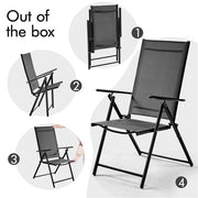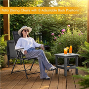 Set of 2 Outdoor Texteline Folding Dining Chairs with 8 Adjustable Back Positions, All-Weather Sling Chairs for Garden/ Lawn/ Porch/ Backyard Pool Dark Gray