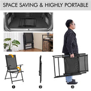 • Foldable for Easy Storage: This patio dining chair is designed to be foldable with a folded size of 36.6″ L × 22.4″ W × 4.3″ Thickness and weighing 12 lb. The compact folded size and lightweight make it stress-free to store in your garage, trunk room, or on a storage rack.