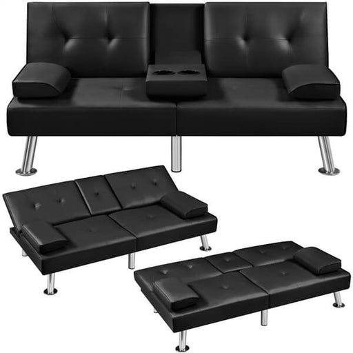View full detailsFaux Leather Convertible Futon Sofa Bed with 2 Throw Pillows & Drop-down Cup Holders, 3-In-1 Adjustable Futon Couch About this item BUILT FOR...